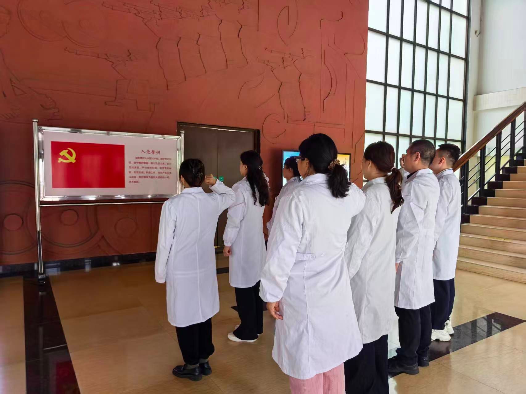参观结束后,全体党员在纪念馆前庄严列队,面向党旗重温入党誓词,铿锵有力的誓言彰显了党员们不忘初心、牢记使命的坚定信念。随后,大家在纪念馆标志性建筑前合影留念,让红色记忆在镜头中定格,让革命精神在心中扎根。