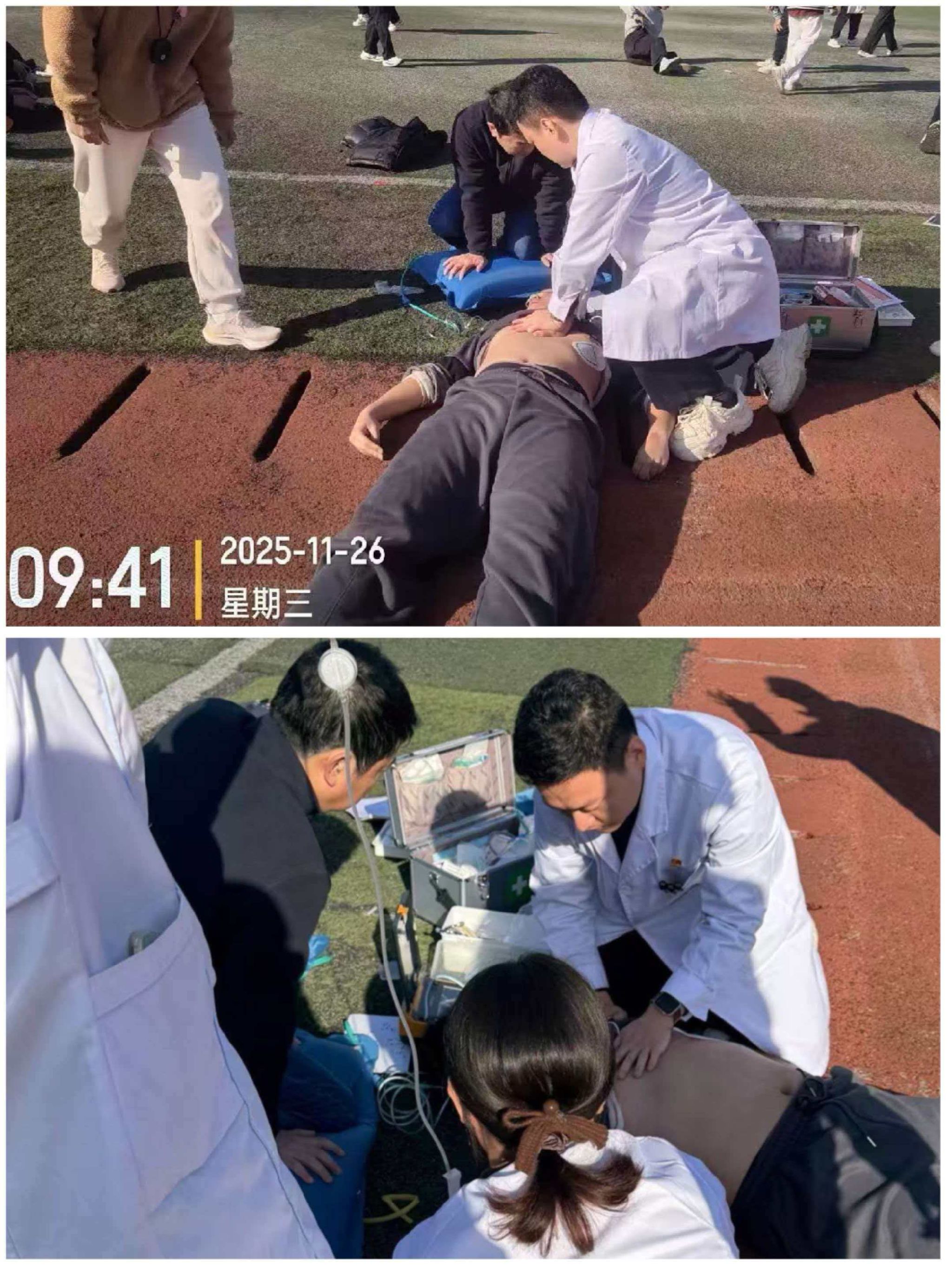 2025年11月26日,我校学生董佳(化名)在操场运动期间突发晕厥,校卫生所凭借高效应急响应和专业施救,争分夺秒,在“黄金4分钟”急救窗口期内完成关键处置,成功挽救学生生命。