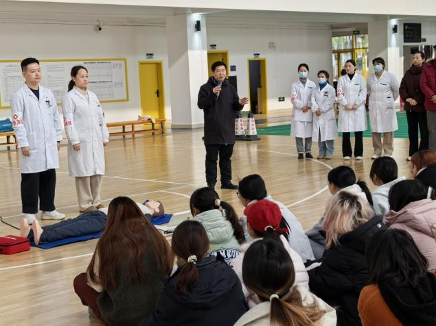 为进一步筑牢校园安全防线,提升师生应对突发心脏呼吸骤停等紧急情况的应急处置能力,近日,校卫生所联合公共课部、保卫部精心组织了“平安校园急救能力提升培训”。党委常委、副校长程智力莅临培训现场,与公共课部老师及学生代表共同参与学习,沉浸式掌握急救技能。