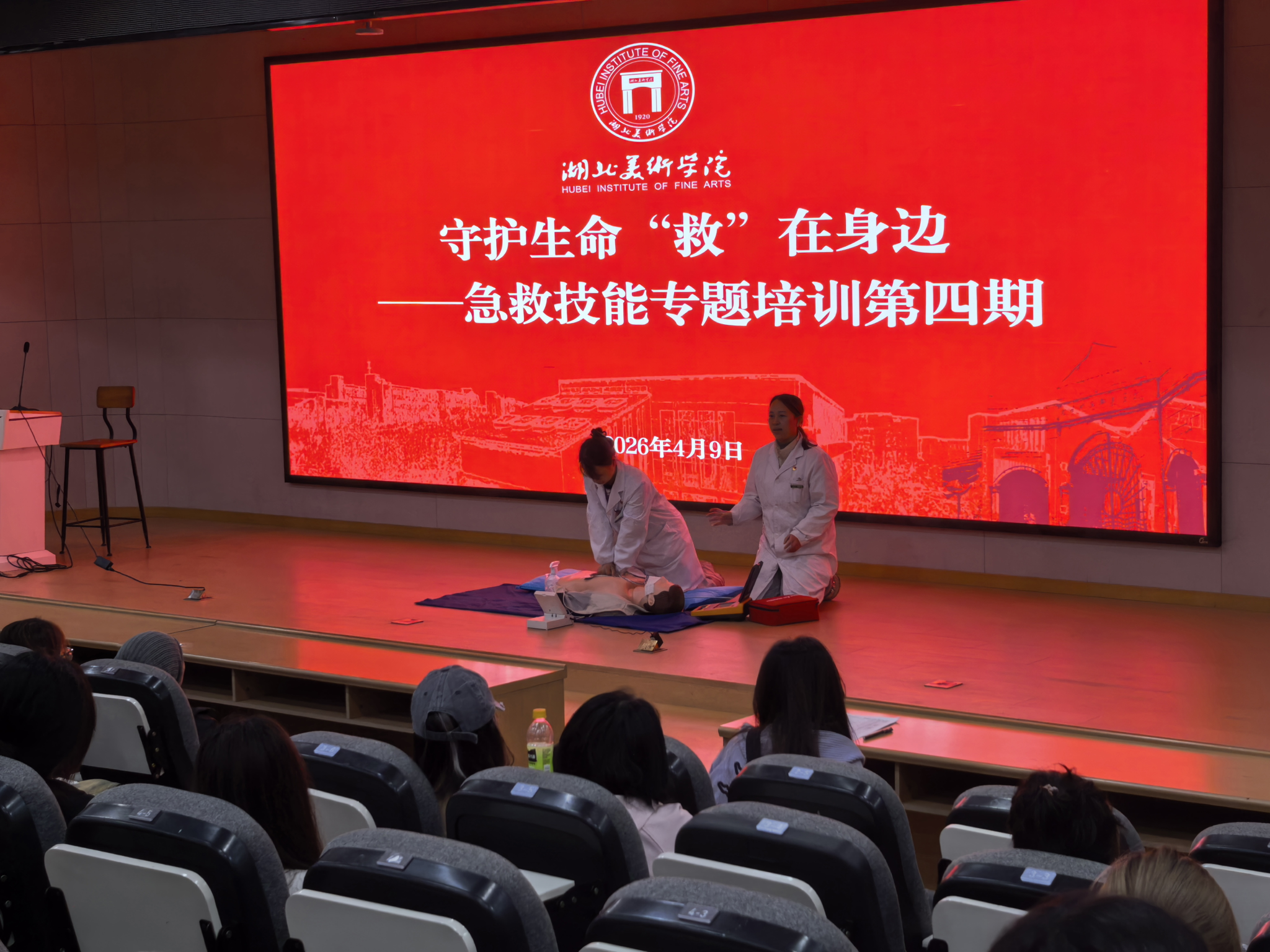 为深入推进健康校园建设,普及应急救护知识,提升学生自救互救能力,2026 年 4 月 9 日,湖北美术学院卫生所在绘画学院开展“守护生命 ‘救’在身边” 急救技能专题培训(第四期)。本次培训贴近校园实际,内容实用、操作性强,深受同学们欢迎,活动圆满完成。